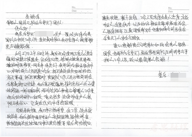 11月5日,龚先生特意手写了一封感谢信,还定制了锦旗送到物业。他在信中写道:“我已经很久没有动笔记录事情了,但这次物业工作人员对住户的热忱和责任心,让我在焦灼中倍感温暖,这件事值得我细细记录下来。”他还表示,这桩“寻金记”里,祈福物业人“急业主之所急”的责任心和黄金一样珍贵。他们找回的不仅是一件贵重首饰,更是业主对社区的信任,是邻里间的暖意,是平凡日常里最动人的“民生温度”。